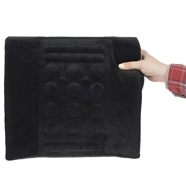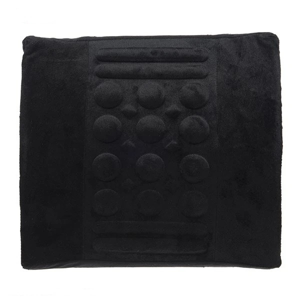 نشستن طولانیمدت هنگام رانندگی و کار روی صندلی اتومبیل یا صندلی اداری میتواند به عضلات و مهرههای کمر فشار وارد آورد. این فشار در ابتدا خود را بهصورت گرفتگی و درد عضله نشان میدهد و چنانچه ادامهدار باشد میتواند باعث ناراحتی مهرههای کمر هم شود. علت این درد پر نشدن گودی کمر و وضعیت نشستن نامناسب است. اغلب صندلیها گودی کمر را پر نمیکنند و همین امر باعث افتادگی شانهها رو به جلو و فشار به مهرههای گردن و فقرات میشود. علاوه بر این تمرکز حین رانندگی و کار، شخص را نسبت به وضعیت نشستن خود بیتوجه میکند. برای حل این مشکلات میتوان از پشتی طبی روی صندلی استفاده کرد. پشتی طبی طرح ماساژ درمان پژوه با انحنایی که دارد گودی کمر را پر میکند. لبههای پشتی به سمت داخل خم شدهاند و ستون فقرات در قسمت وسط پشتی قرار میگیرد. همین امر به اصلاح وضعیت نشستن شخص کمک میکند. در قسمت وسط پشتی برآمدگیهایی وجود دارد که علاوه بر ماساژ دادن کمر به گردش بهتر هوا کمک میکنند. بنابراین ضمن ایجاد حس راحتی، از عرق کردن و خیس شدن کمر جلوگیری میشود. روکش پشتی از پارچهی مخمل ساخته شده است. پشت این روکش زیپی وجود دارد که با باز کردن آن فوم سفیدرنگ داخل پشتی دیده میشود. این فوم عامل انعطافپذیری مناسب پشتی طبی است. در صورت کثیف شدن روکش میتوان آن را جدا کرده و شست. در پشت روکش بندی کشی و قابل تنظیم وجود دارد که به کمک آن میتوان پشتی را روی انواع صندلی اداری و اتومبیل نصب کرد. ابعاد پشتی 34 × 33 × 9 سانتیمتر بوده و برای همه مناسب است.